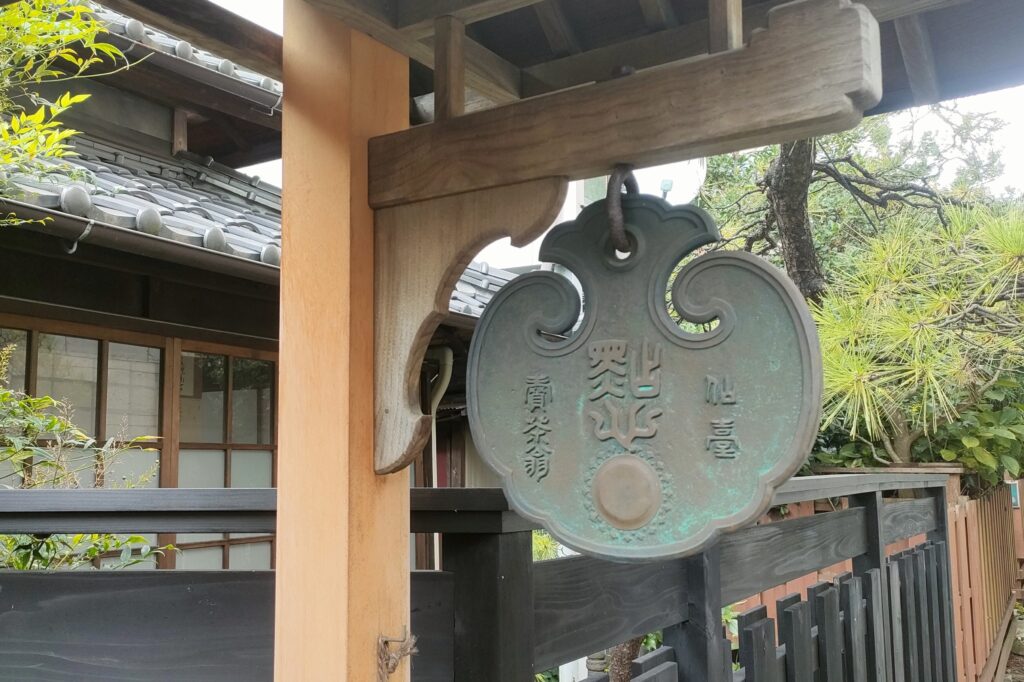 店の入り口には、禅宗寺院で食事の時を告げる鳴り物「雲板」(うんぱん)を模した看板がありました。お店のロゴにも使われているものです。ひっそりと佇む外観は情緒たっぷり。ここが仙台メディアテークなどが並ぶ都会の一角であることが信じられません。
